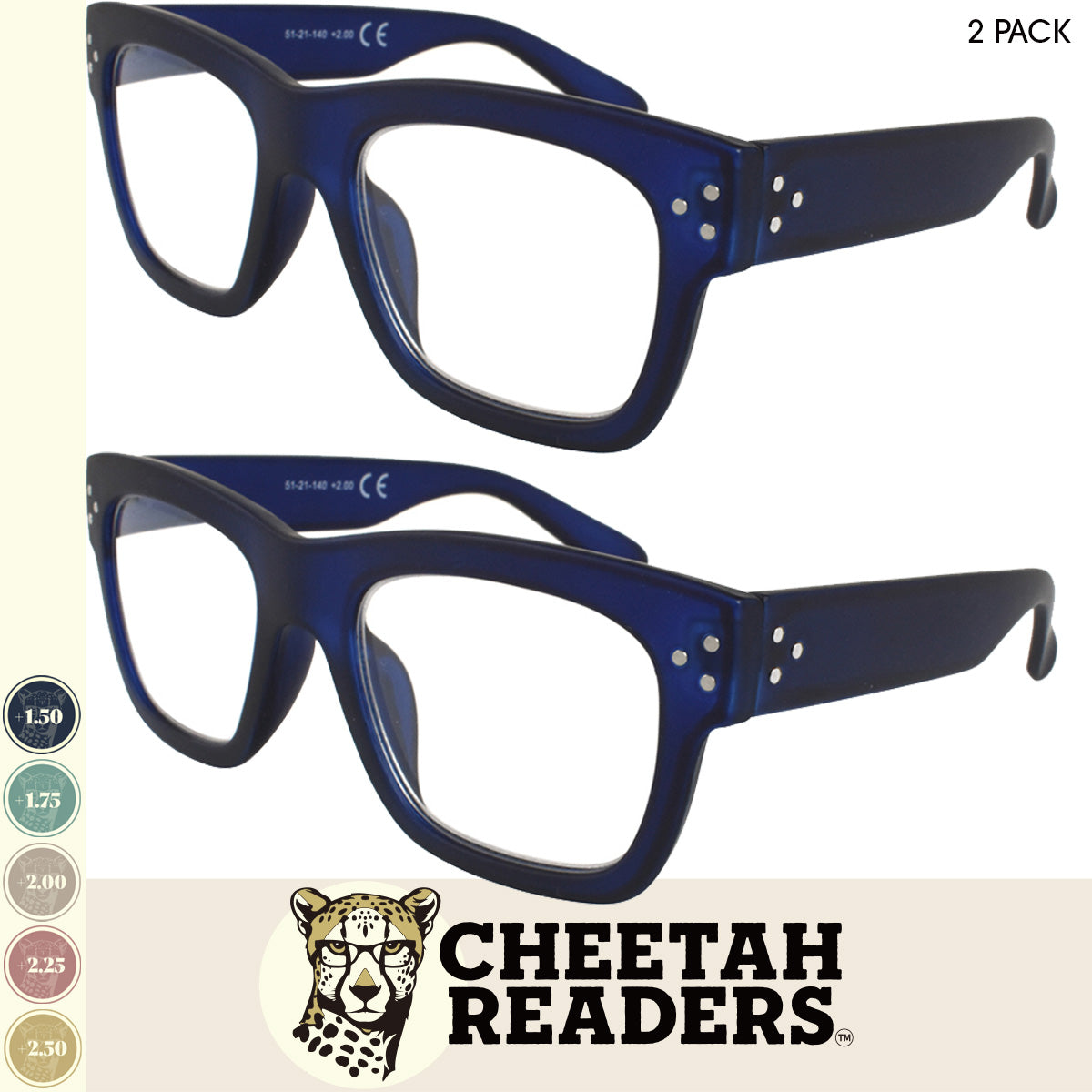CHEETAH READERS (+1.50, +1.75, +2.00, +2.25, +2.50) & 1 LARGE CANVAS SNAP CASE